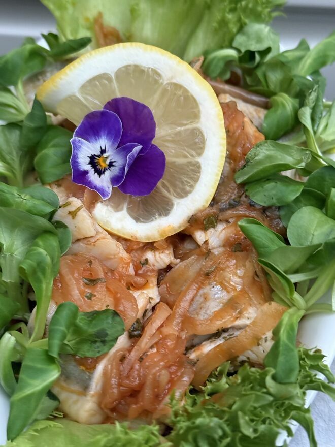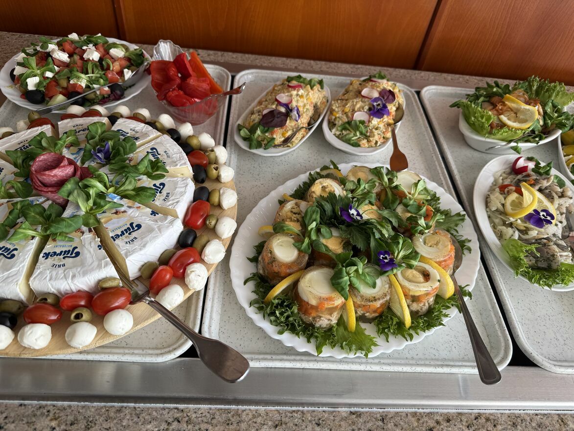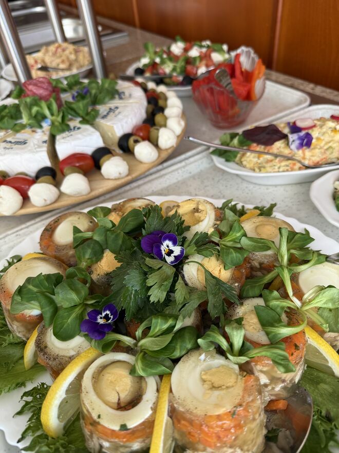 Domowe wyżywienie: śniadania oraz obiadokolacje z deserem.
