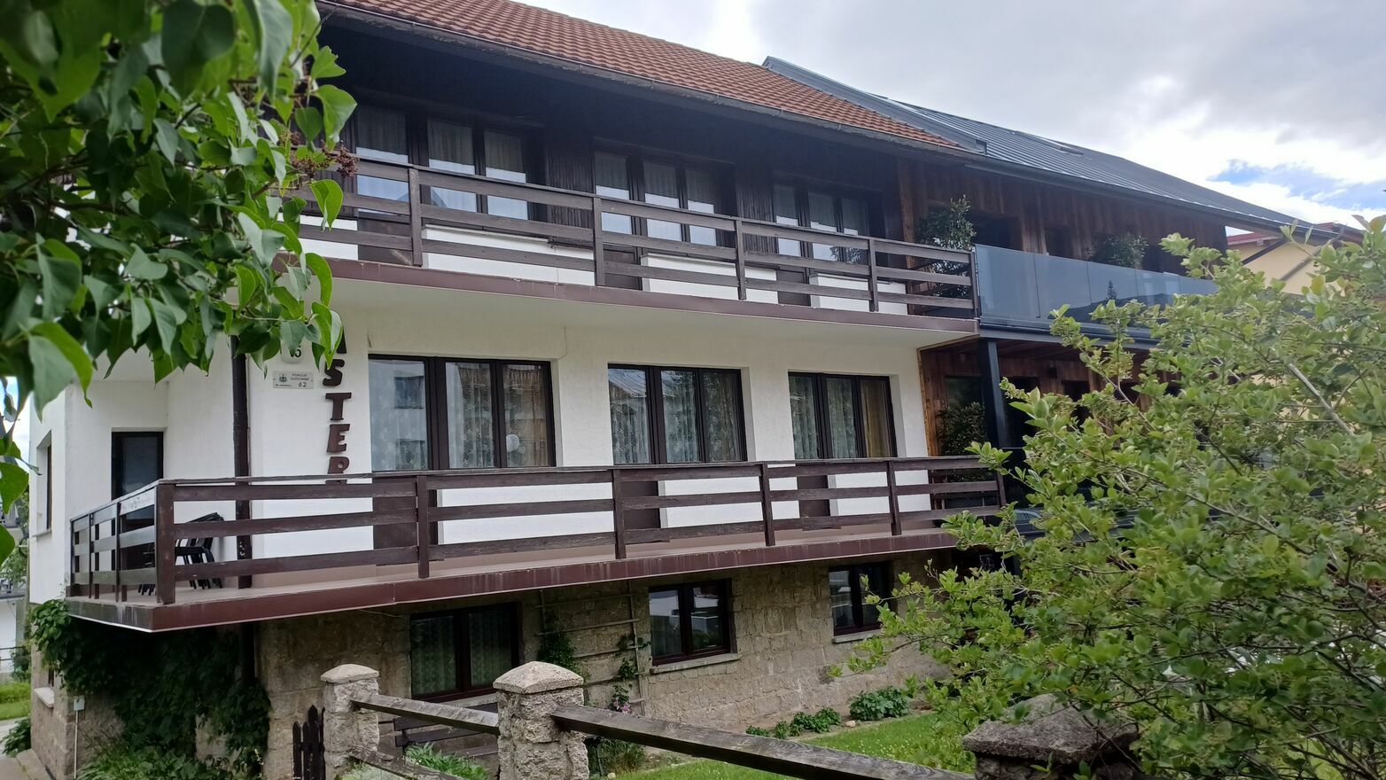Budynek podłączony do miejskiej sieci wod-kan,gazu i energii elektrycznej. Doprowadzony jest również światłowód. Na powierzchnię użytkową składają się: - parter - wiatrołap, holl, 2 pokoje, kuchnia. łazienka, kotłownia oraz garaż. - I piętro - 5 pokoi, kuchnia do użytku gości, natrysk , WC - II piętro - 3 pokoje + 2 ścięte, natrysk, WC - poddasze- strych. Pokoje na 1 i 2 piętrze są z wyjściem na balkon na stronę południowo-zachodnią z widokiem na góry.